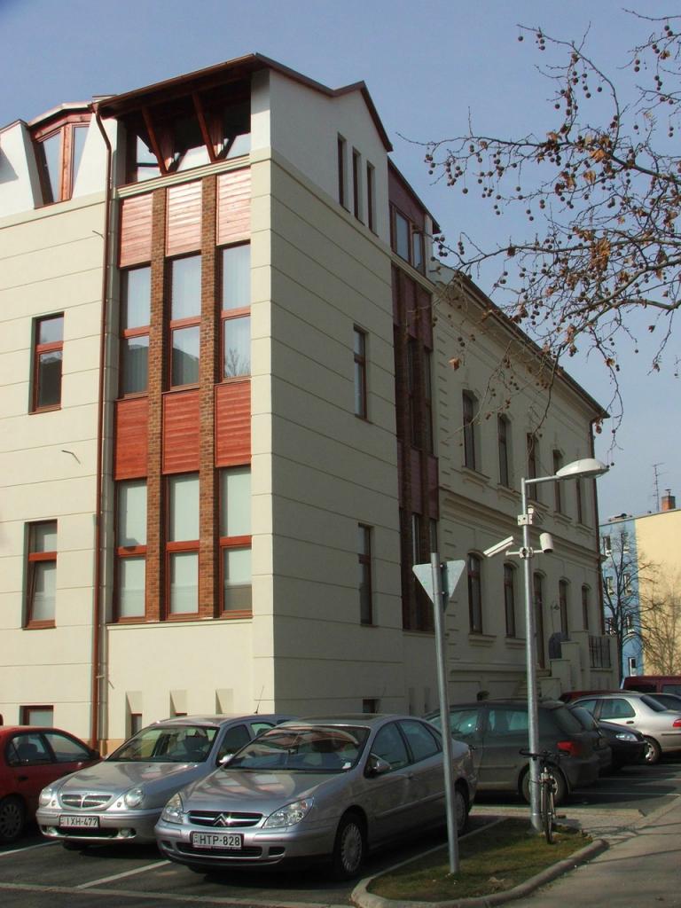Így lett belőle irodaház, kívül-belül felújított homlokzattal, belső tereit, helyiségszerkezetét megőrizve. Nyitott kettős udvarát egy új épületszárnnyal zártuk be, így alakult ki egy nyitott és egy zárt belső udvara. Az új épületrész -bővítés- kerülni próbálja az ilyenkor alkalmazni elvárt üveges függönyfalas sémát, inkább visszaidézne a régiből, felvállalva ?újszülöttségét? is.