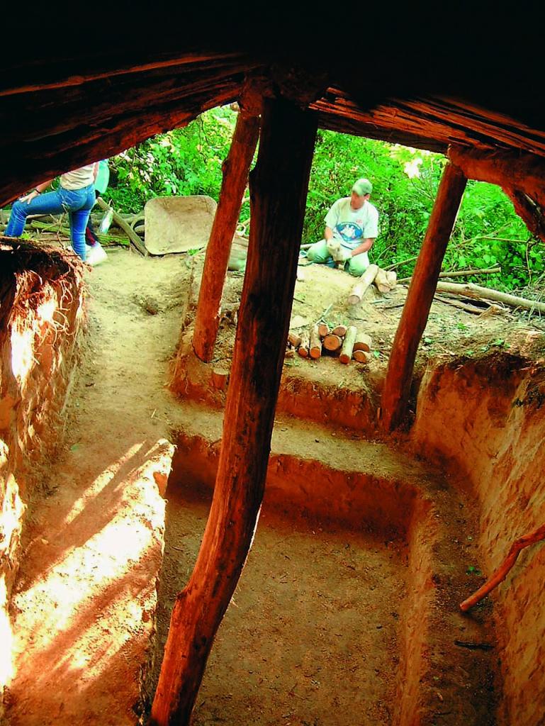 A terület egyik domboldalában található egy beomlott szájú löszbarlang; ennek nyílása elé építettük a Bárkát oly módon, hogy az omladék eltávolítása és a barlang dúcokkal való biztonságossá tétele után az az épített tér bővületeként szolgálhasson. A Bárkát is a földbe süllyesztettük, így teteje került egy szintbe a környező domboldallal. Szerkezete akác (ez korlátlanul rendelkezésre áll a területen), csak rátett illetve összeeresztett kapcsolatokkal. A sűrű szaruzatra került az a gumilemez, mely egy 30 ezer literes honvédségi vizestank anyagából készült; ezt házigazdánk direkt e célra vette. A gumi fölé kerül majd a tervek szerint az a 60-70 cm földréteg, ami a vegetáció folytonosságát biztosíthatja.