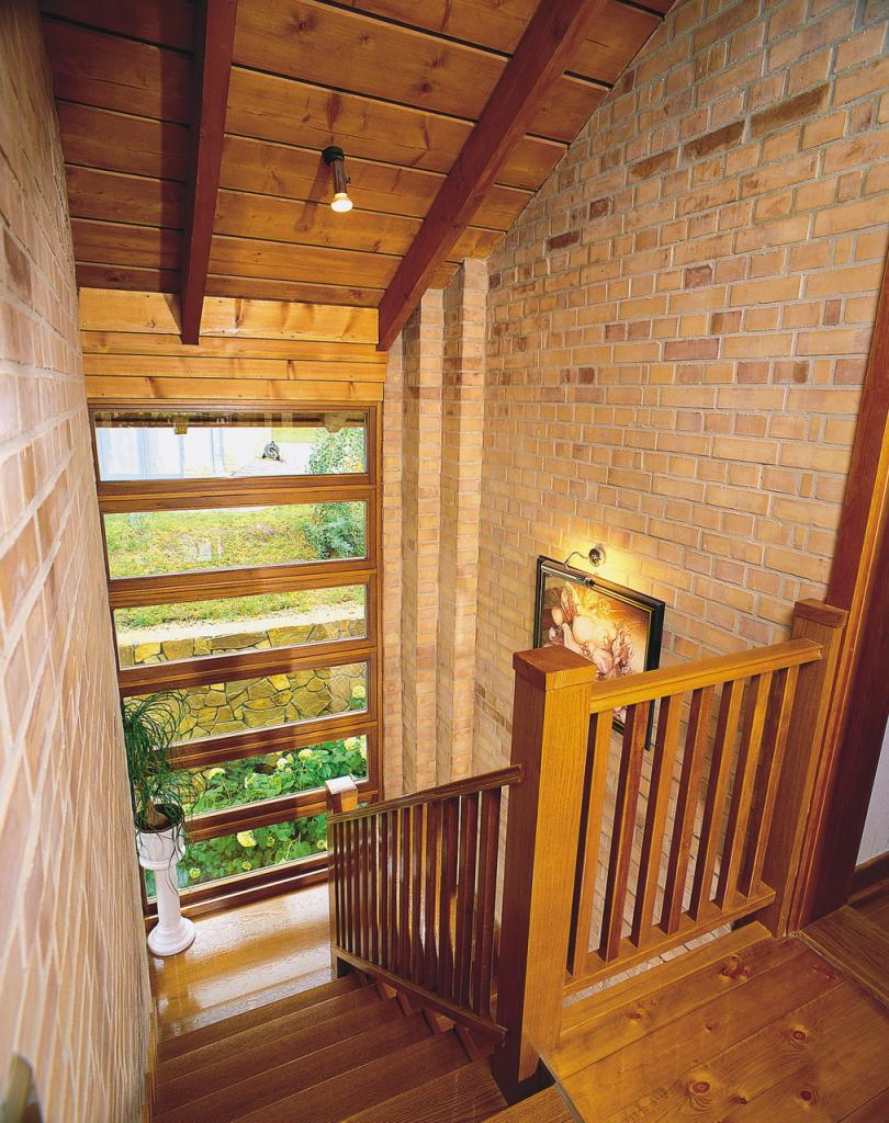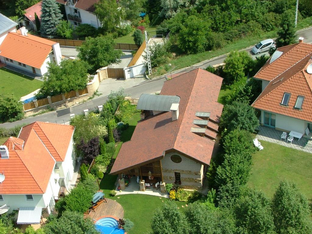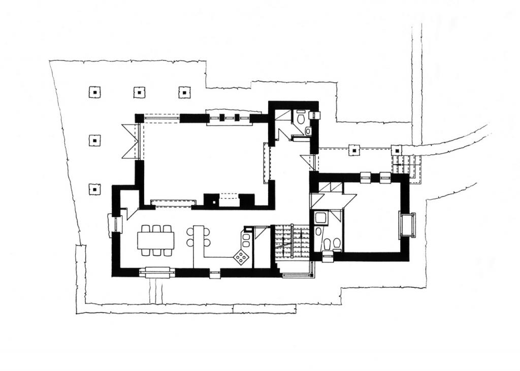 Sűrűn beépített budai hegyoldalon épült szabadonálló lakóház. A terület erős lejtése, ugyanakkor szűk volta miatt a ház támfalak közt (alatt-fölött) áll. A garázs támfalszerűen kapcsolódik a pince + földszint + tetőteres lakóházhoz. Az épületen királyréti kő és mátraderecskei km. tégla valamint látszó faszerkezet és hódfarkú cserépfedés jelenik meg.