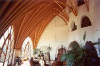 A meglévő épület adottságaihoz Wright korai épületeinek eszköztárát választotta a tervező, utalva a Préri-házak dinamizmusára is. A tető részletmegoldása újszerű: a párkány alsó síkja vízszintesen, kiváltó nélkül lebeg az ablaksáv felett ? ezt a párkány feletti tetőszerkezetbe rejtett kiváltók tették lehetővé. A masszív, de könnyed tetőn belül hatékony átszellőzés és a kinyúló párkányok révén a ház nyáron hűtés nélkül is jó klímát biztosít.